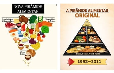 Se antes a base era dominada por grandes quantidades de carboidratos refinados, hoje o que se defende como fundamento de uma alimentação saudável são alimentos frescos e minimamente processados, com maior variedade vegetal e melhor qualidade de gordura. Em outras palavras, aquilo que ocupava o topo – consumo moderado, atenção à qualidade e ao contexto – desce para a base, enquanto o excesso de produtos industrializados é empurrado para o topo, como algo a ser reduzido ao mínimo.